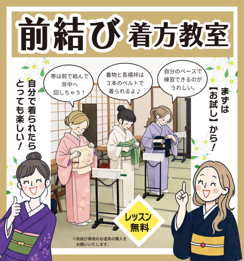 「きものを自分で着れるようになりたい」とお考えの方はたくさんいらっしゃいます。みどまでは、「ラク」で「簡単」な着方を学ぶ【前結び着方教室】を開催しております。