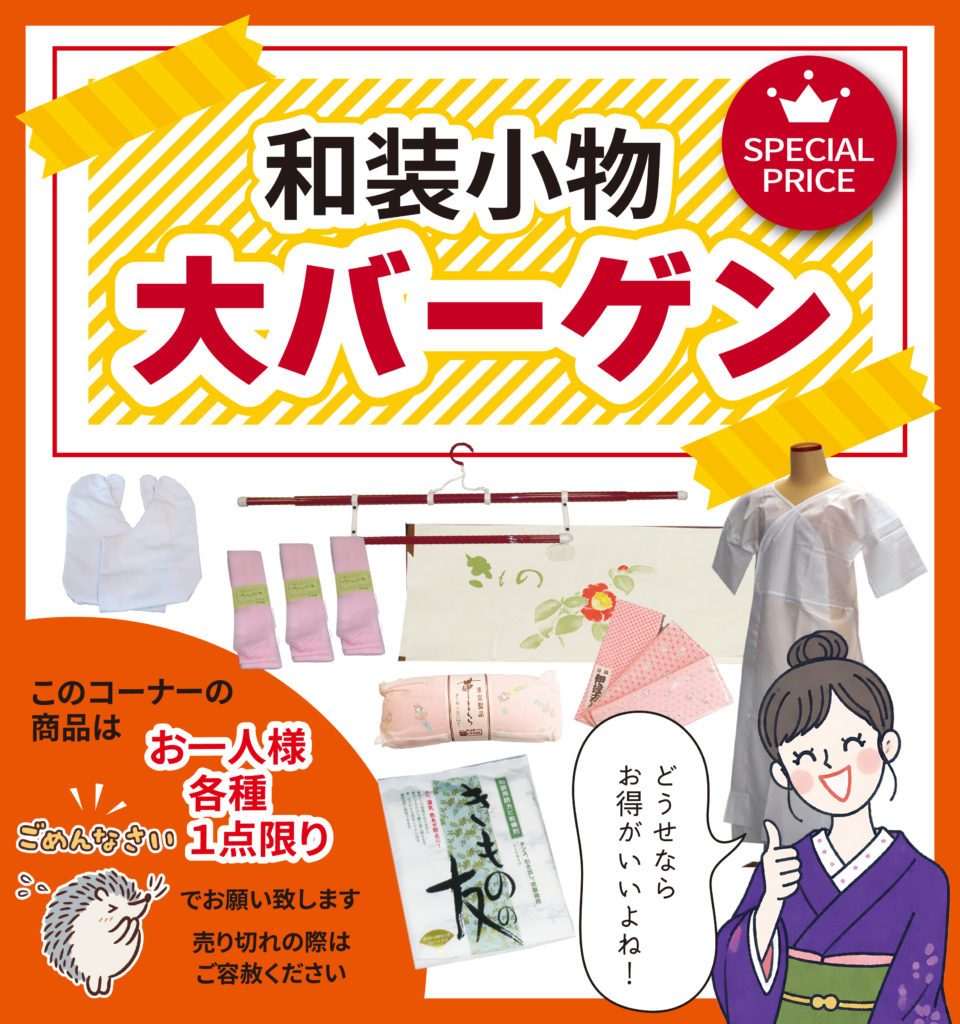 和装小物大バーゲン開催!この機会に、古くなったり痛んだりしている和装小物を新しくしましょう!
